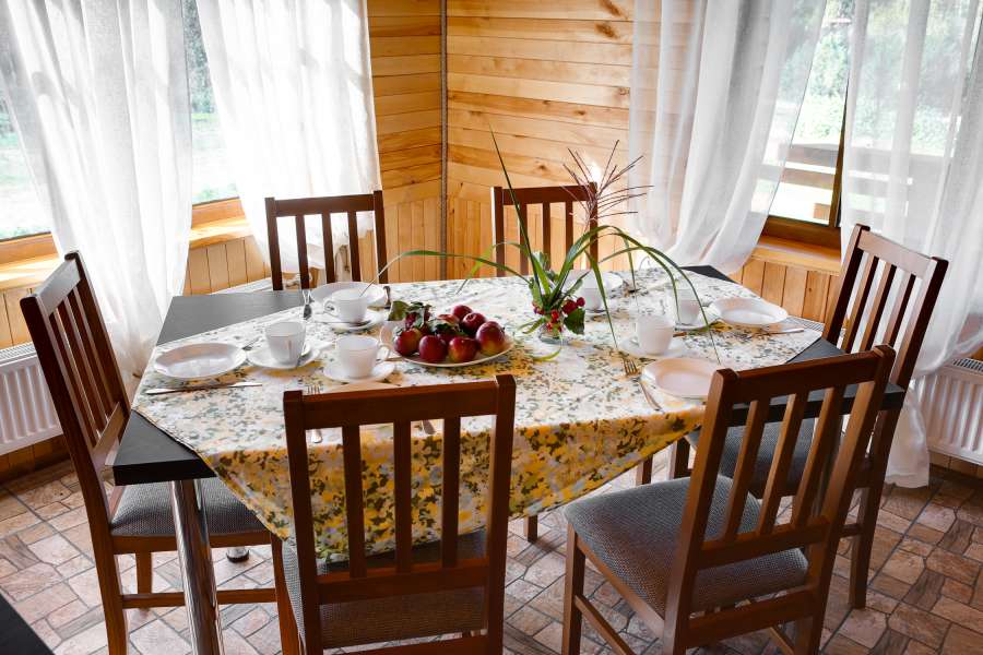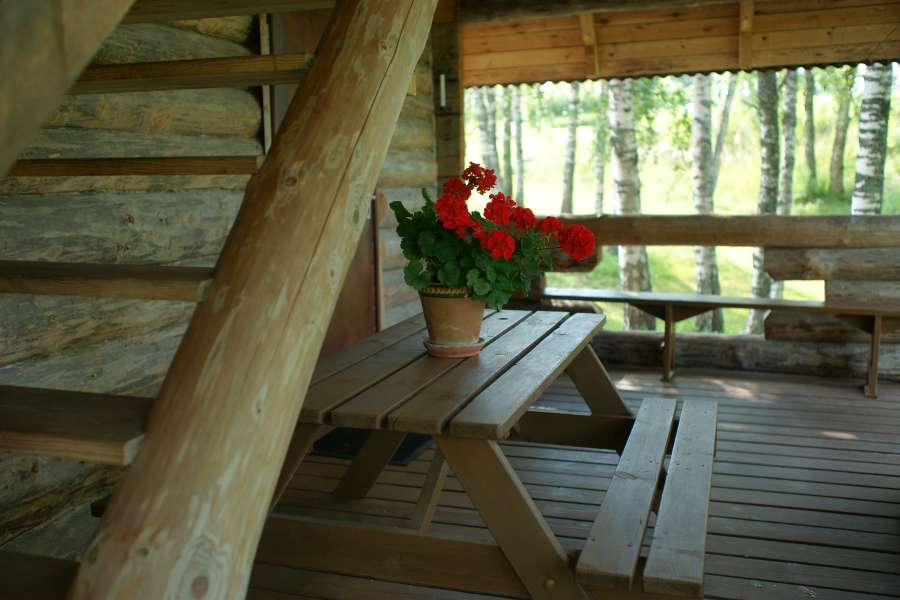 Ērtībām: autostāvvieta, iekārtota virtuve ar elektrisko plīti, tosteri, elektrisko tējkannu, ledusskapi, kā arī ar visiem nepieciešamajiem traukiem maltītes pagatavošanai, kamīntelpa, viesību istaba, pirts, duša un WC, bezvadu internets (WI-FI). Āra terase ar galdu un grilu. Volejbola un futbola laukums.